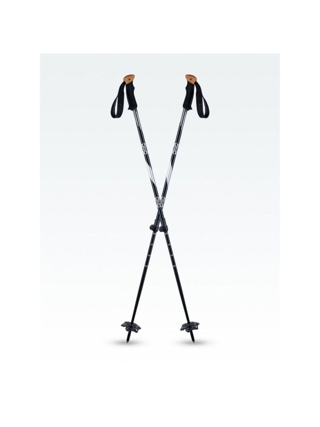 The lightweight 7075 aluminum All Mountain 2-Piece Poles feature a 2-part shaft and an adjustable locking mechanism that clamps securely and releases effortlessly packability and on-the-fly adjustability. EVA cork grip and carbide tips.